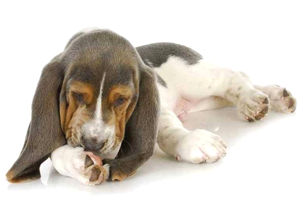 Applicazione del gel lenitivo OFFICINALIS Dalla Grana; contiene estratti di elicriso e calendula, olio di Nigella e vitamina E. È un prodotto antinfiammatorio, antiallergico, cicatrizzante, lenitivo e rinfrescante ed è adatto al trattamento topico della dermatite ed altre dermopatie. Ottimo per cani che si mordono continuamente le zampe.